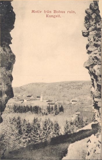 Tryckt text på kortet: "Motiv från Bohus ruin Kungelf".