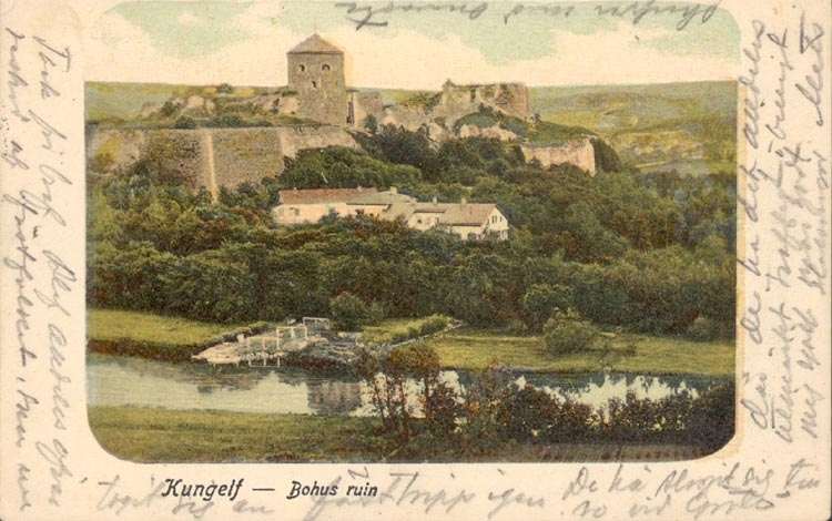 Tryckt text på kortet: "Kungelf - Bohus ruin".