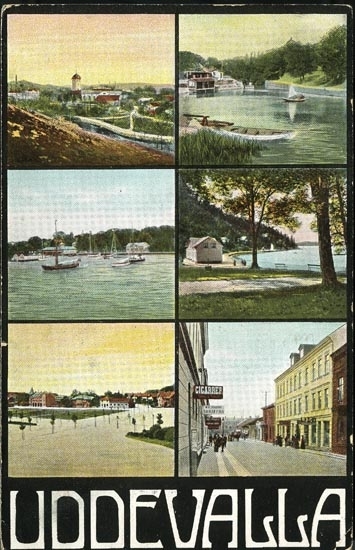 Tryckt text på vykortets framsida: "UDDEVALLA ."