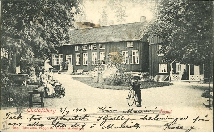 Tryckt text på vykortets framsida: "Gustafsberg,Torget."