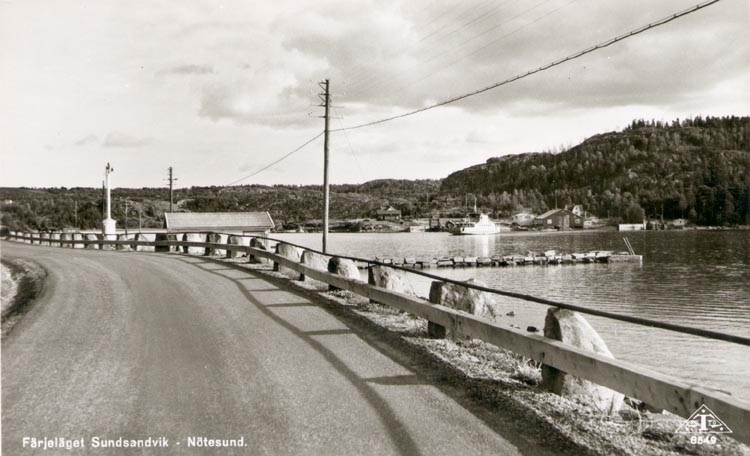 Tryckt text på kortet: "Färjeläget Sundsandvik- Nötesund".