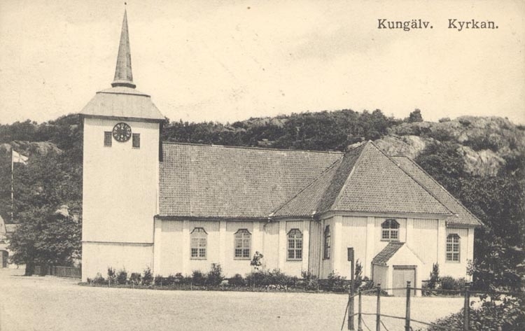 Tryckt text på kortet: "Kungälv. Kyrkan".