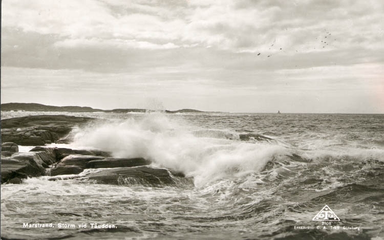 Tryckt text på kortet: "Marstrand. Storm vid Tåudden."