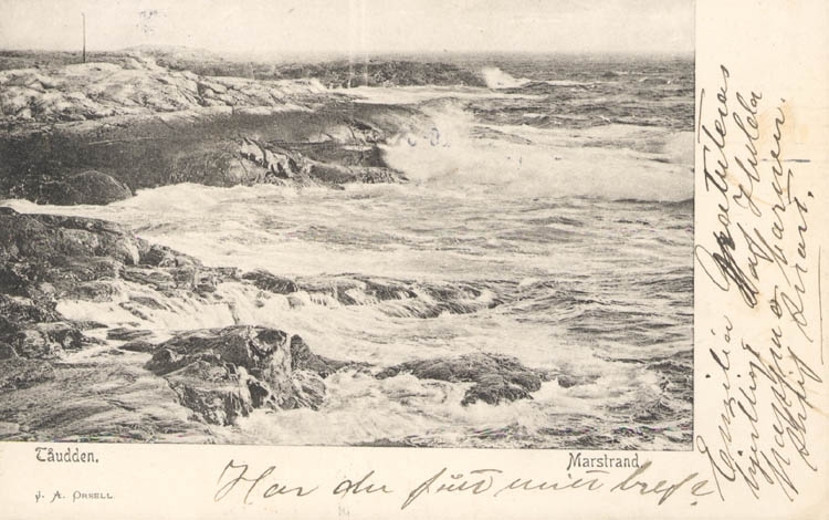 Tryckt text på kortet: "Marstrand. Tåudden."