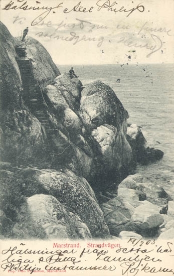Tryckt text på kortet: "Marstrand. Strandvägen."