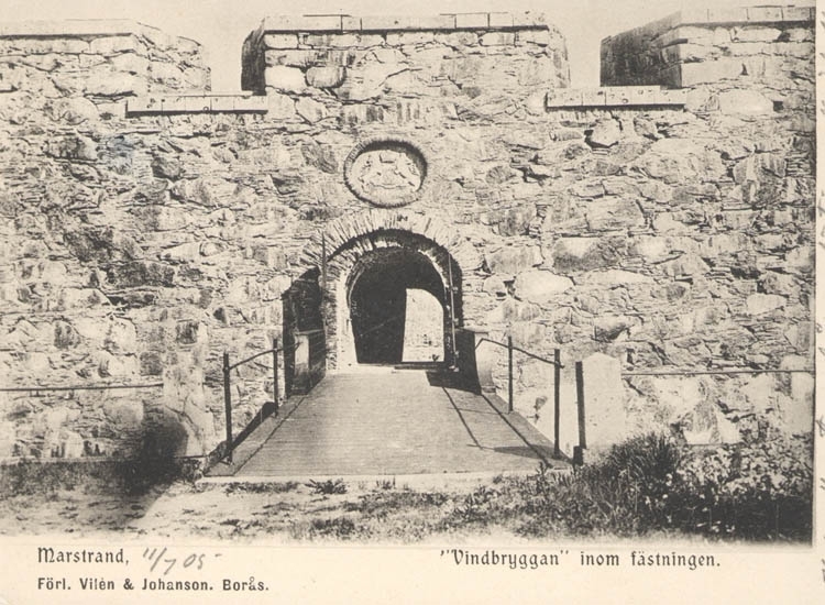 Tryckt text på kortet: "Marstrand. Vindbryggan inom fästningen."