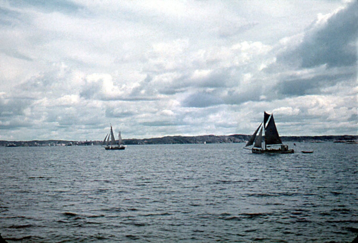 Söder om stångehuvud, Fiskebäckskil i bakgrunden, Galeas och jakt.
