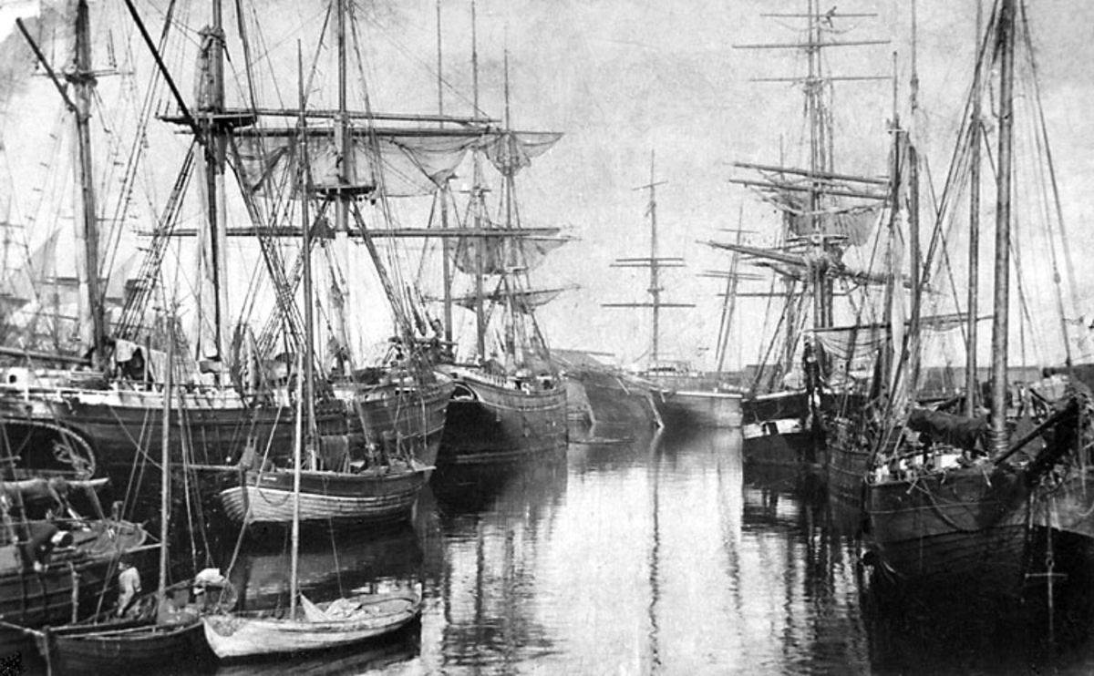 Sockerbrukshamnen, 1892. (Taget från kyrksidan).