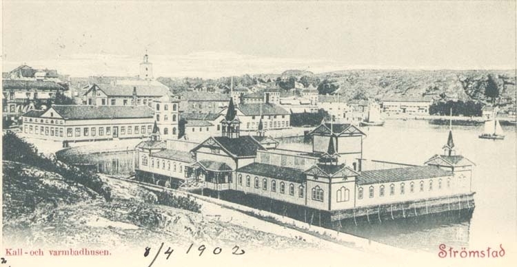 Tryckt text på kortet: "Kall- & Varmbadhuset. Strömstad."
