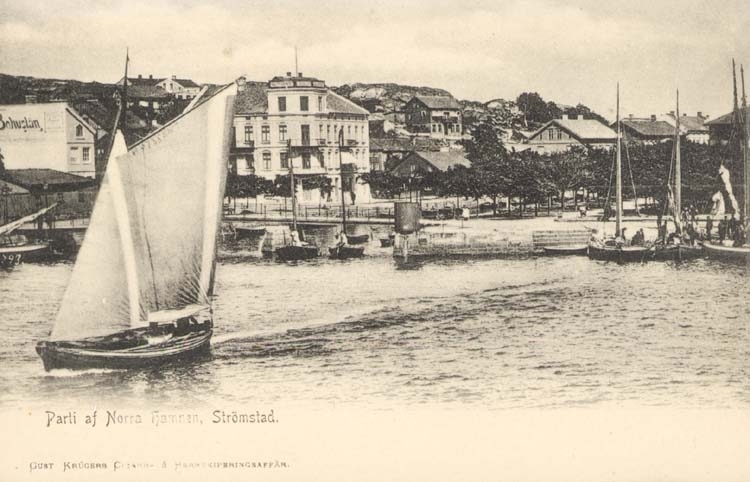 Tryckt text på kortet: "Strömstad. Norra Hamnen."