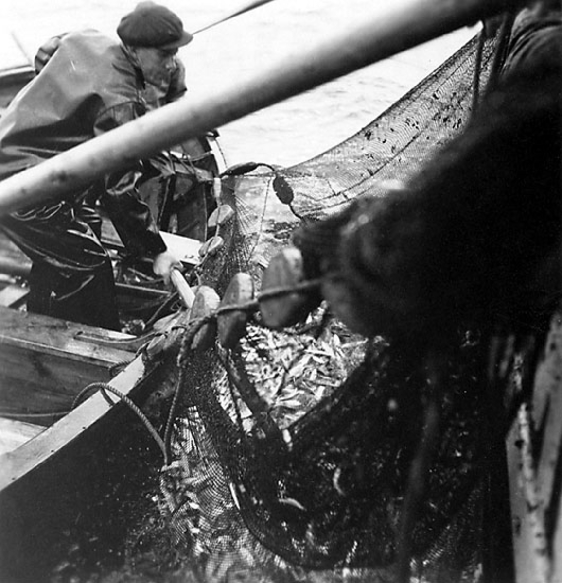 Fångsten bärgas. Arne Albertsson vid "lännet".