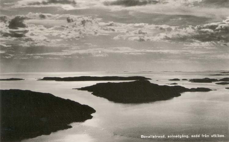 Tryckt text på kortet: "Bovallstrand, solnedgång, sedd från utkiken."