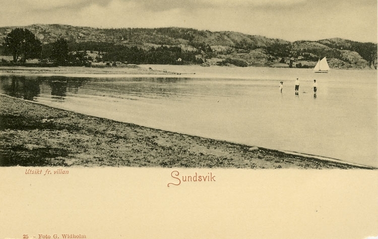 Enligt Bengt Lundins noteringar: "Sundsvik. Utsikt från Villan. Barn och segelbåt".