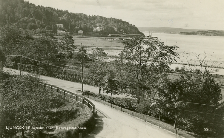 Enligt Bengt Lundins noteringar: "Ljungskile. Utsikt från järnvägsstationen. Södra nerfarten".