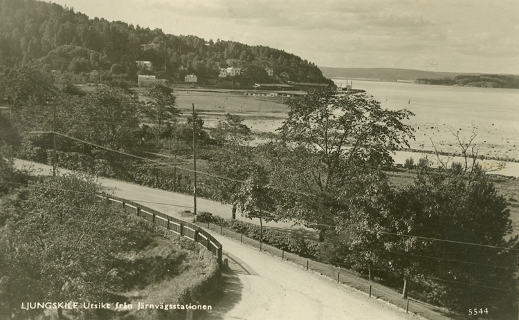 Enligt Bengt Lundins noteringar: "Ljungskile. Utsikt från järnvägsstationen. Södra nerfarten".