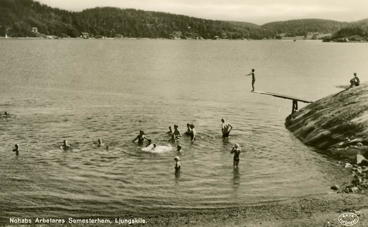 Enligt Bengt Lundins noteringar: "Ulvöns badplats. Nohab arbetarnas semesterhem, Ljungskile".