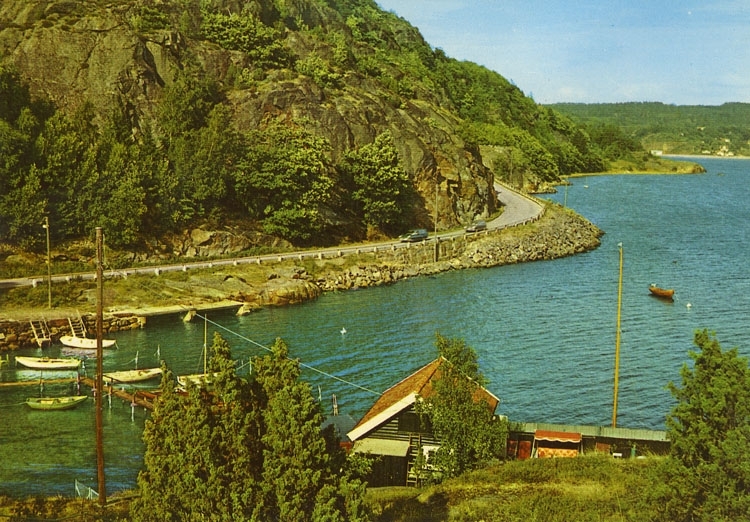 Enligt Bengt Lundins noteringar: "Idyll av Ulvesundsvägen med Ljungskile i bakgrunden".