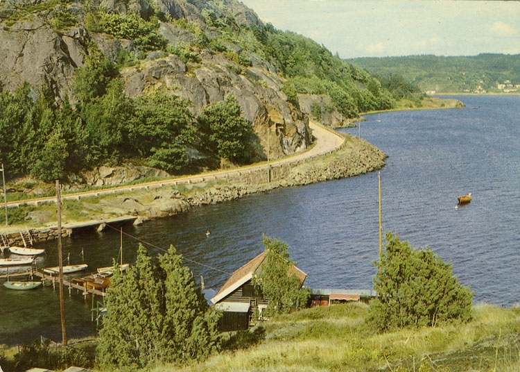 Enligt Bengt Lundins noteringar: "Idyll av Ulvesundsvägen med Ljungskile i bakgrunden".