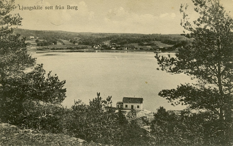 Enligt Bengt Lundins noteringar: "Ljungskile sett från Berg. Stuga vid strand".
