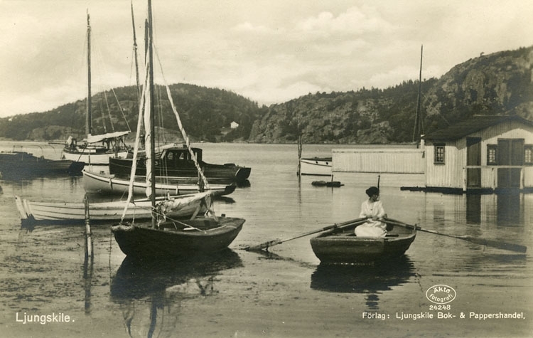 Enligt Bengt Lundins noteringar: "Kvinna ror mot badbasin. Ljungskile".