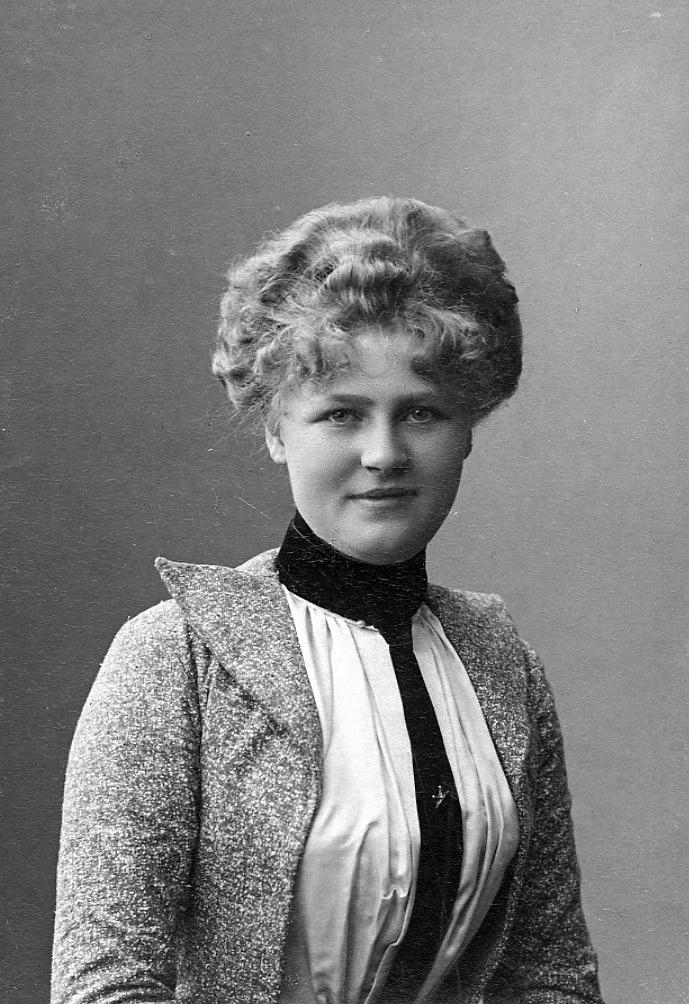 Lizzie Andersson, vännina till Ella Åkerlund. Foto på P.A. Åkerlund med släkt och vänner till familjen.