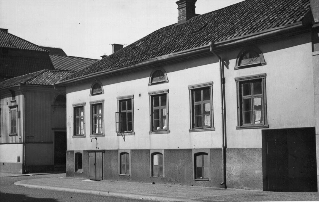 Lilla Brogatan 23 med Rydinska huset före 1929.