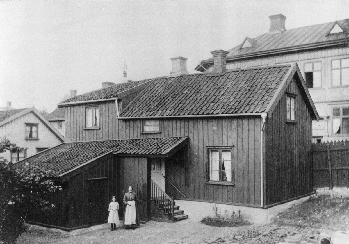Lilla Brännerigatan 16 i hörnet vid Stengärdsgatan omkring år 1910.