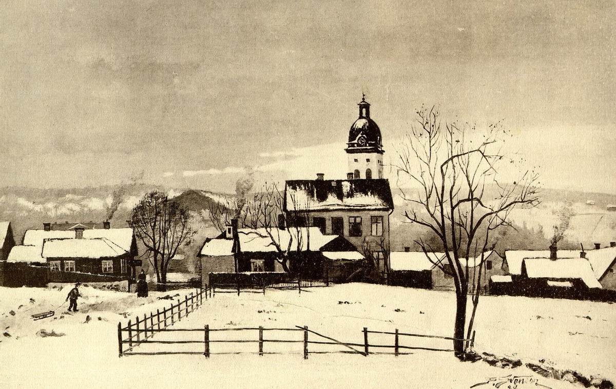 Utsikt från Lugnet på 1880-talet. Foto efter oljemålning.