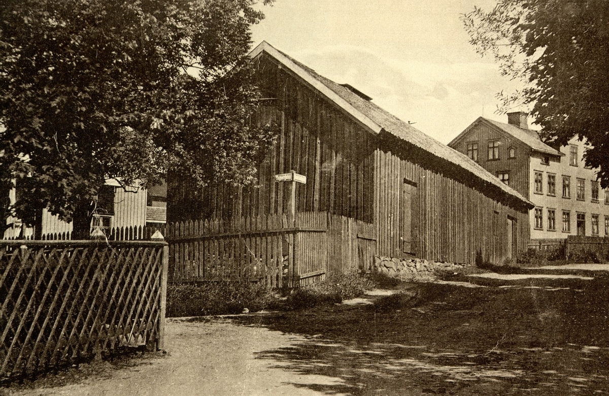 Gustav Adolfsgatan med Flaménska ladan år 1890.
