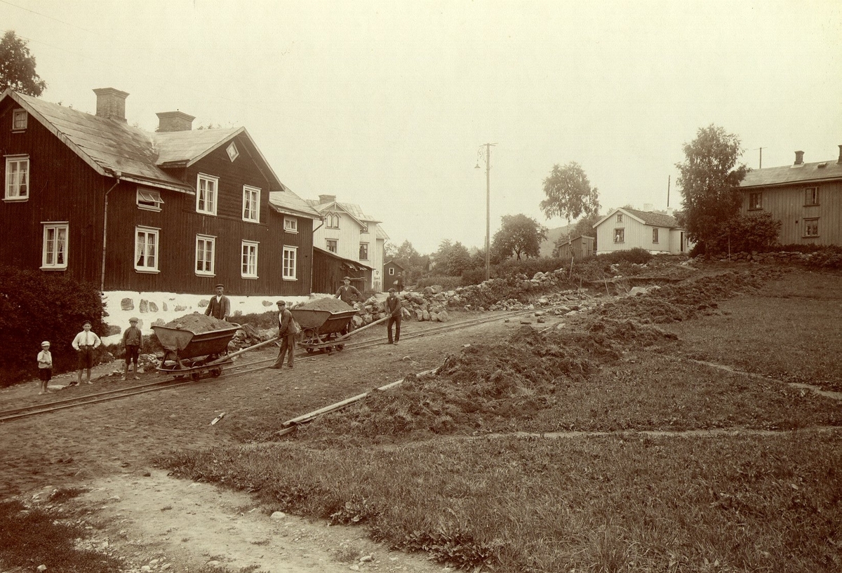 Gatuarbete vid Vegagatan mot öster år 1914.
