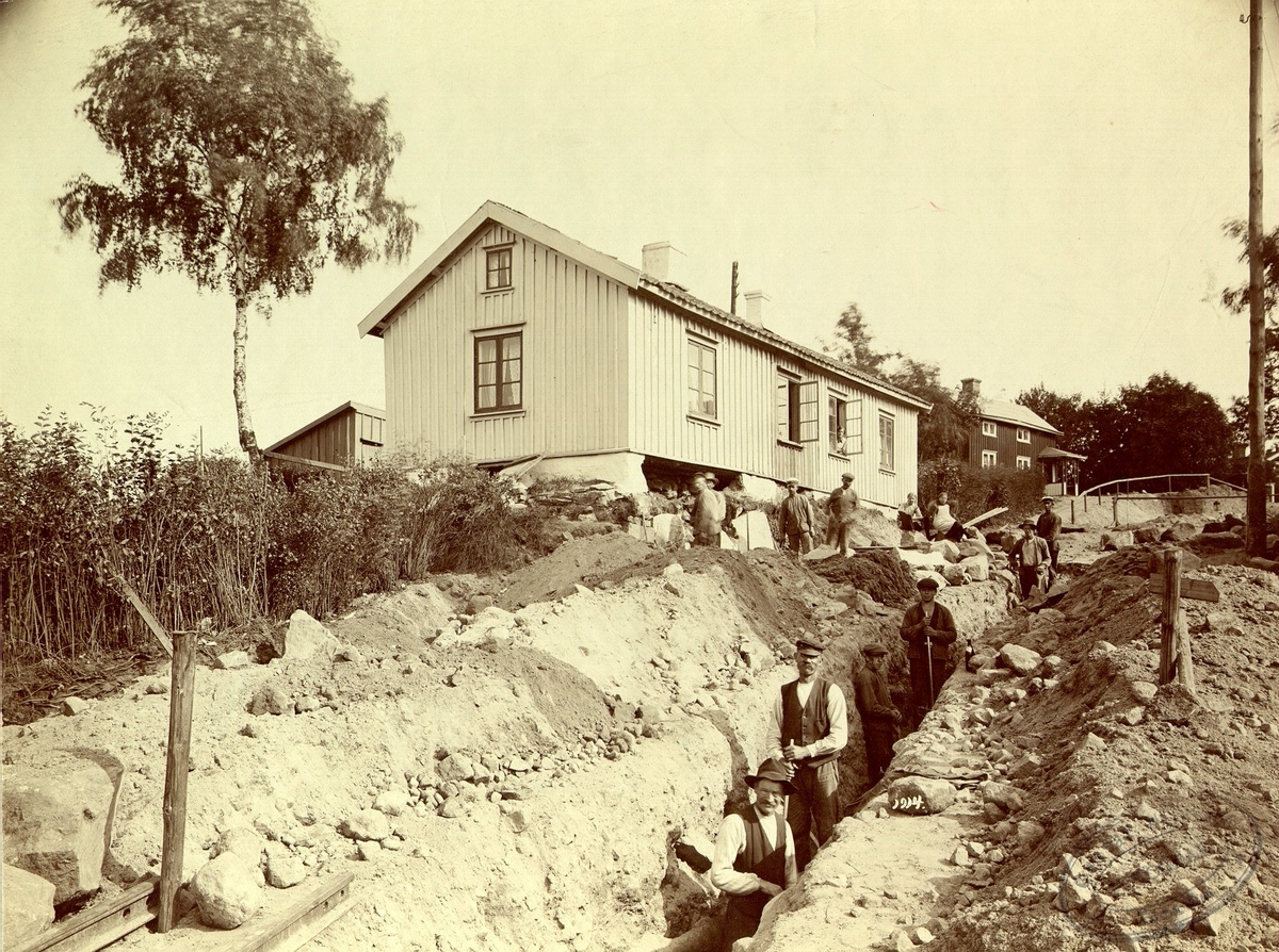 Rörledningsarbete vid Vegagatan mot nordost år 1914.