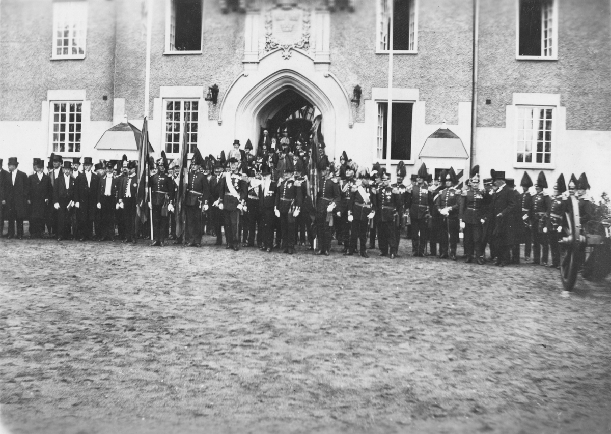 Kung Gustav V:s besök i Borås 1924. Folksamling vid Älvsborgs regementes 300-års jubileum.