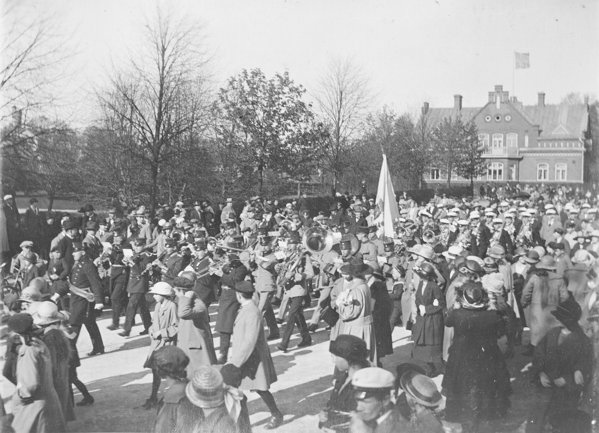 Parad och studentifrande vid Allmänna Läroverket (Bäckängsgymnasiet).