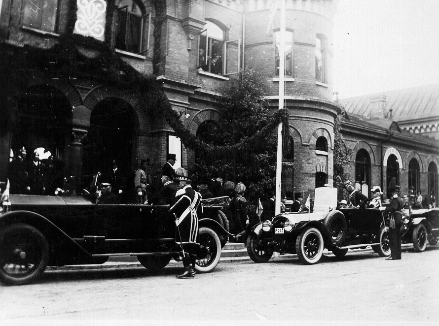 Gustav V:s kungabesök vid Borås Centralstation år 1924.