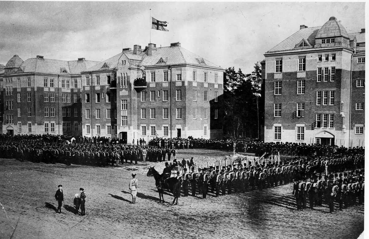 Älvsborgs regemente paraderar på I 15:s kaserngård år 1914.