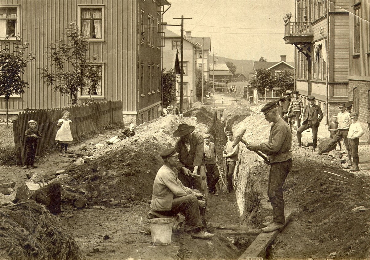 Alströmergatan mot norr med kvarteret Kanariefågeln t.v. år 1912.