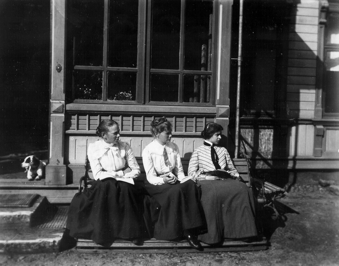 Elin Odencrants, Gertrud och Elsa Palme vid villa Annelund år 1902.