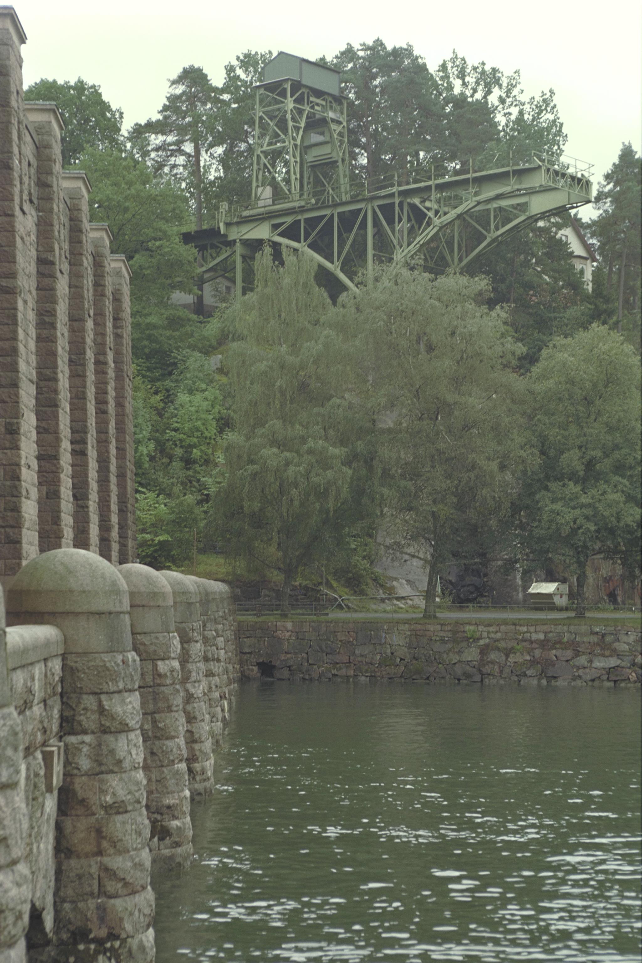 Bron sett från halvcirkel formade pir området framför dörren till turbinbyggnaden.