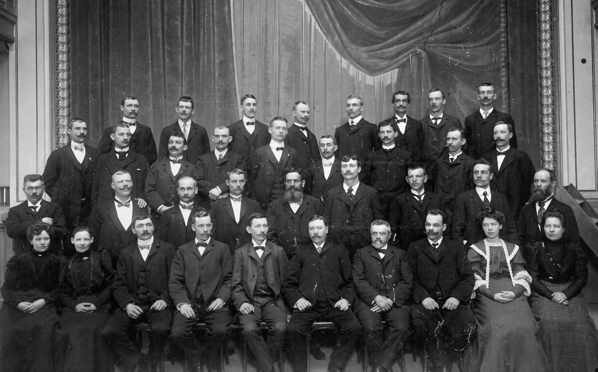 Svenska Textilarbetareförbundets 5:e kongress i Stockholm år 1906. Boråsare är Karl Johansson (avd 21), översta raden nr. 1 fr.v. Tobias Carlqvist nr. 7 och Birgersson, näst översta raden som nr. 1.