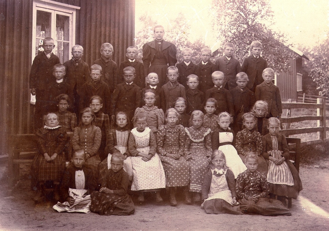 Lärarinnan Lydia Lydell med sin skolklass år 1895.