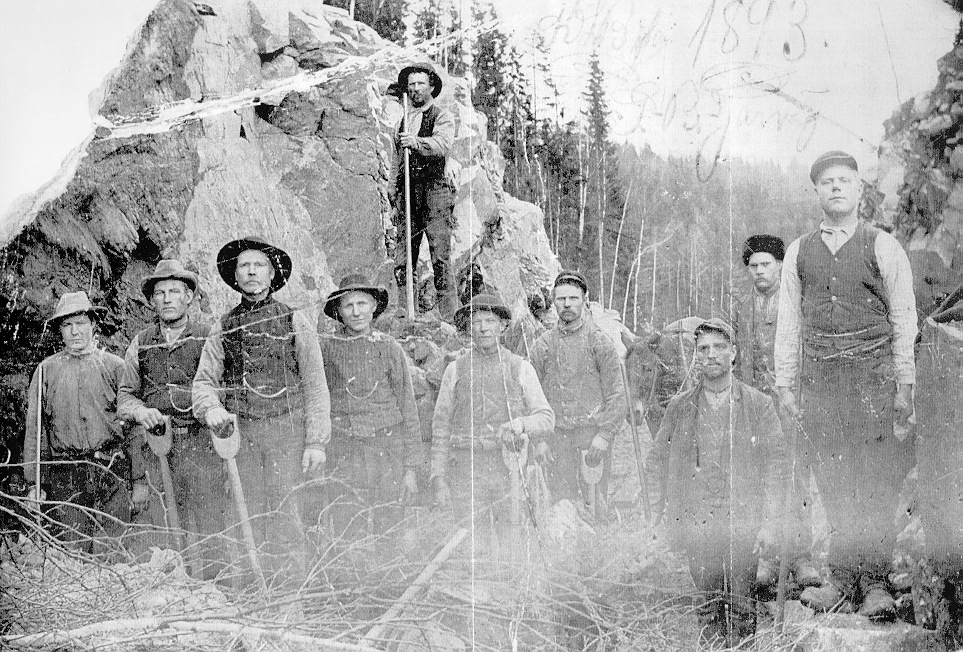 Rallare vid byggandet av järnvägen Borås - Göteborg, här förmodligen i trakten av Bollebygd.