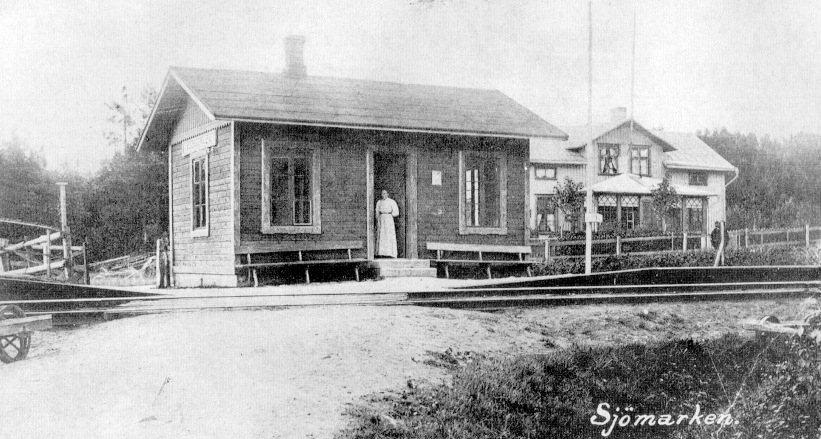 Sjömarkens hållplats som låg vid Lyckebovägen och enligt uppgift också tidigare varit Hultafors hållplats. Foto från omkring år 1910.