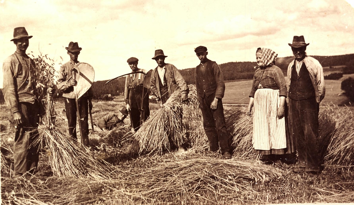 Skördearbete i Nässlehult, Bollebygd på 1920-talet.