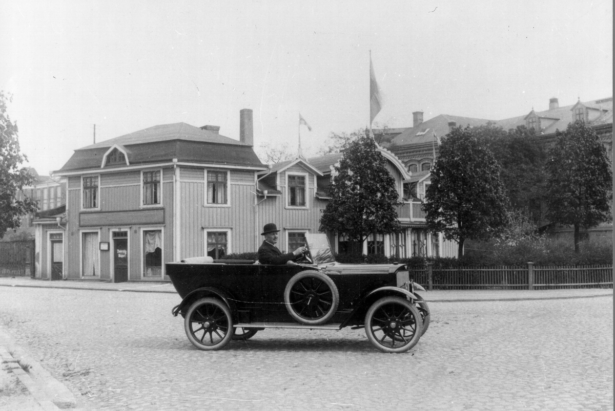 "Andersson på Brostugan" poserar här i sin bil utanför den på sin tid välkända brödbutiken i Brostugan vid Viskastrandsgatan.
