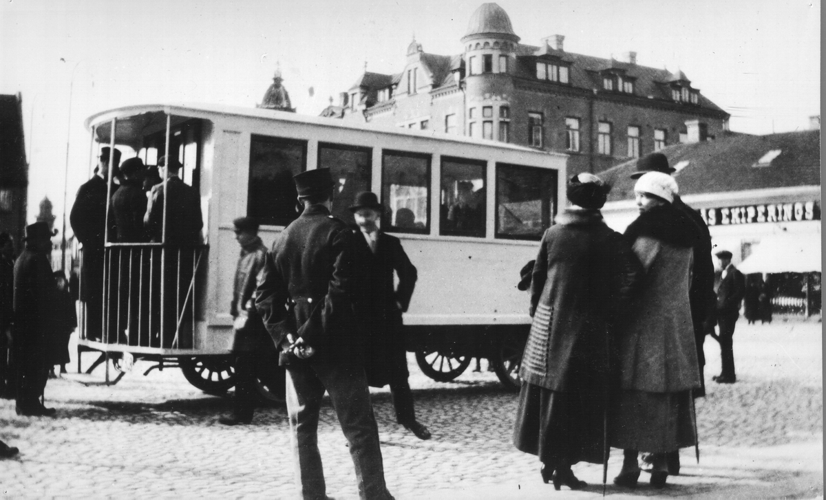 Borås första Omnibuss, som startade trafiken den 20 mars år 1921 under direktör Hugo Lillhage. Rutten var Stora Torget - Regementet - Stora Torget och priset var 30 öre per person och tur.