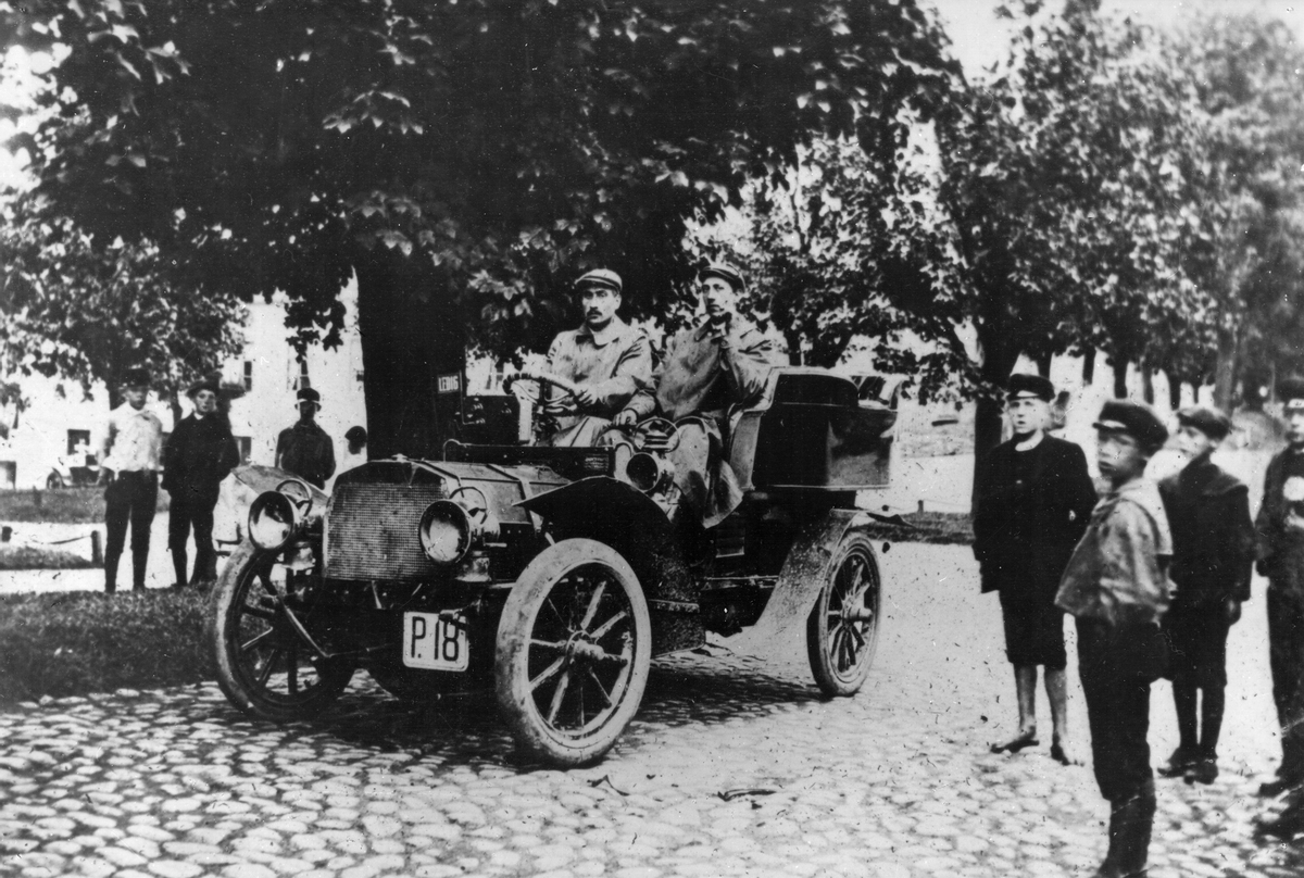 Borås första taxibil, P 18, fotograferad på Allégatan i början på 1910-talet.