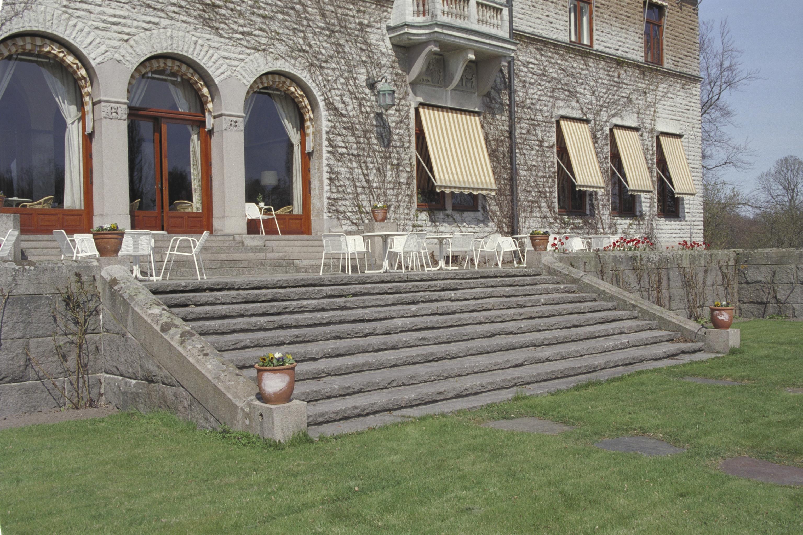 Slottets södra fasad, parkfasaden. Terrassanläggningens översta trappa