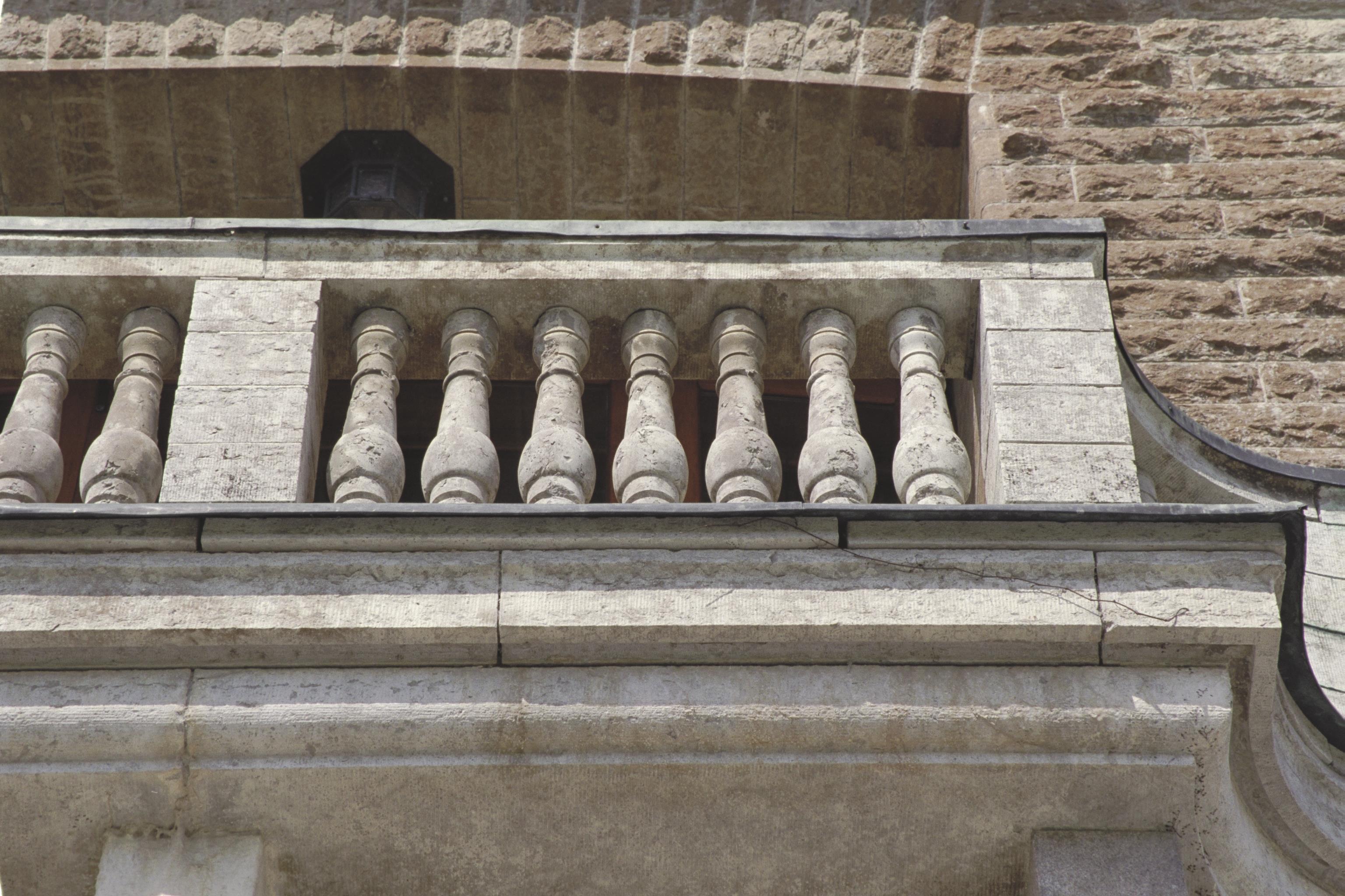 Slottets södra fasad, parkfasaden. Del av den vänstra balkongens bal.