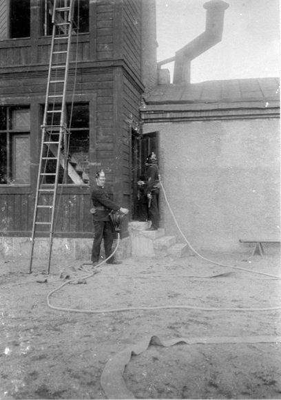 Brandmän vid övningstornet.