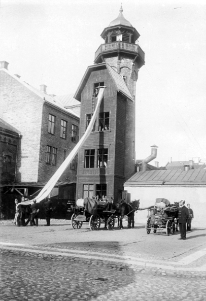 Brandmän vid övningstornet.